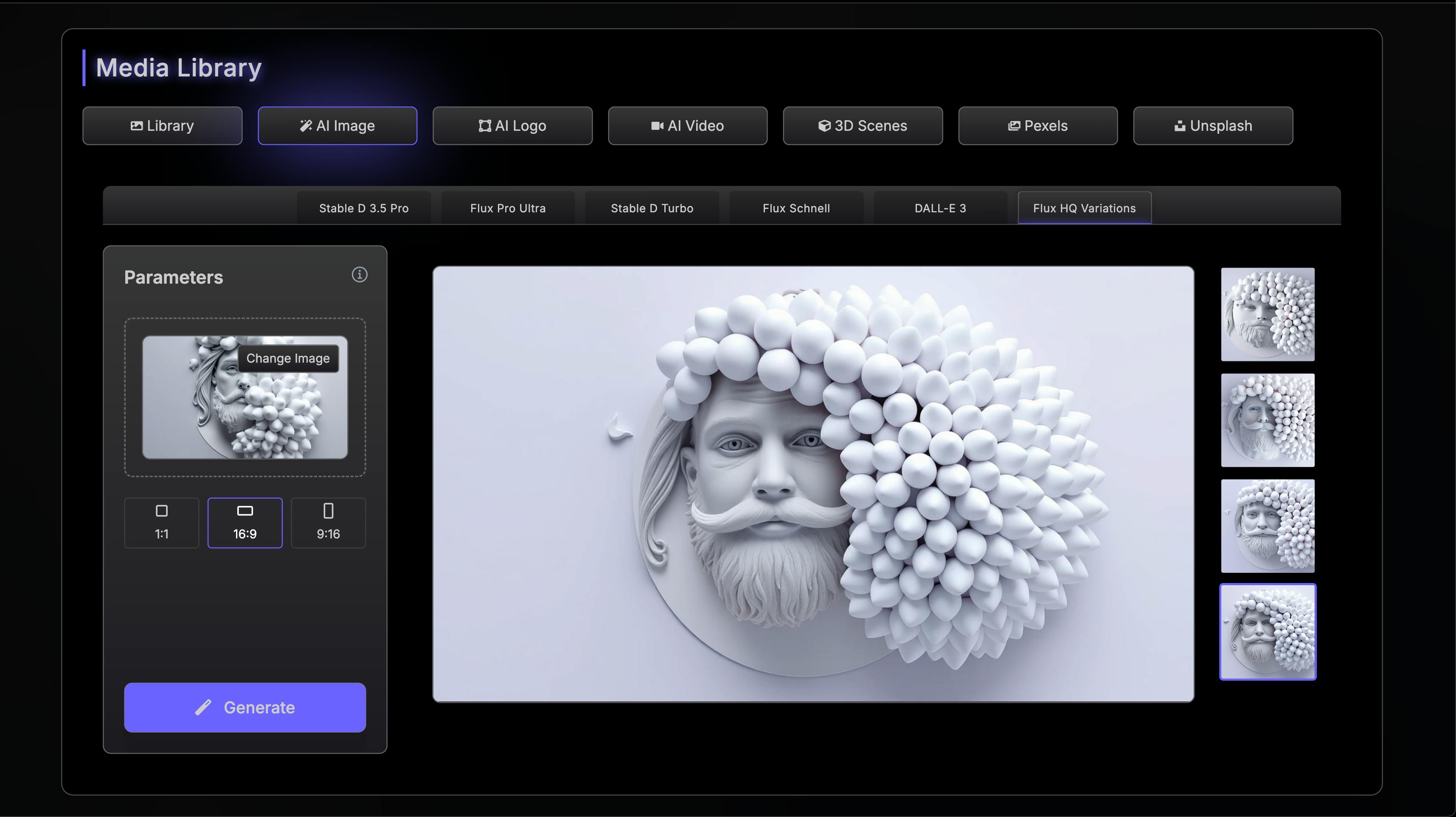 Create and integrate custom images, SVGs, videos, and more without leaving your workspace.