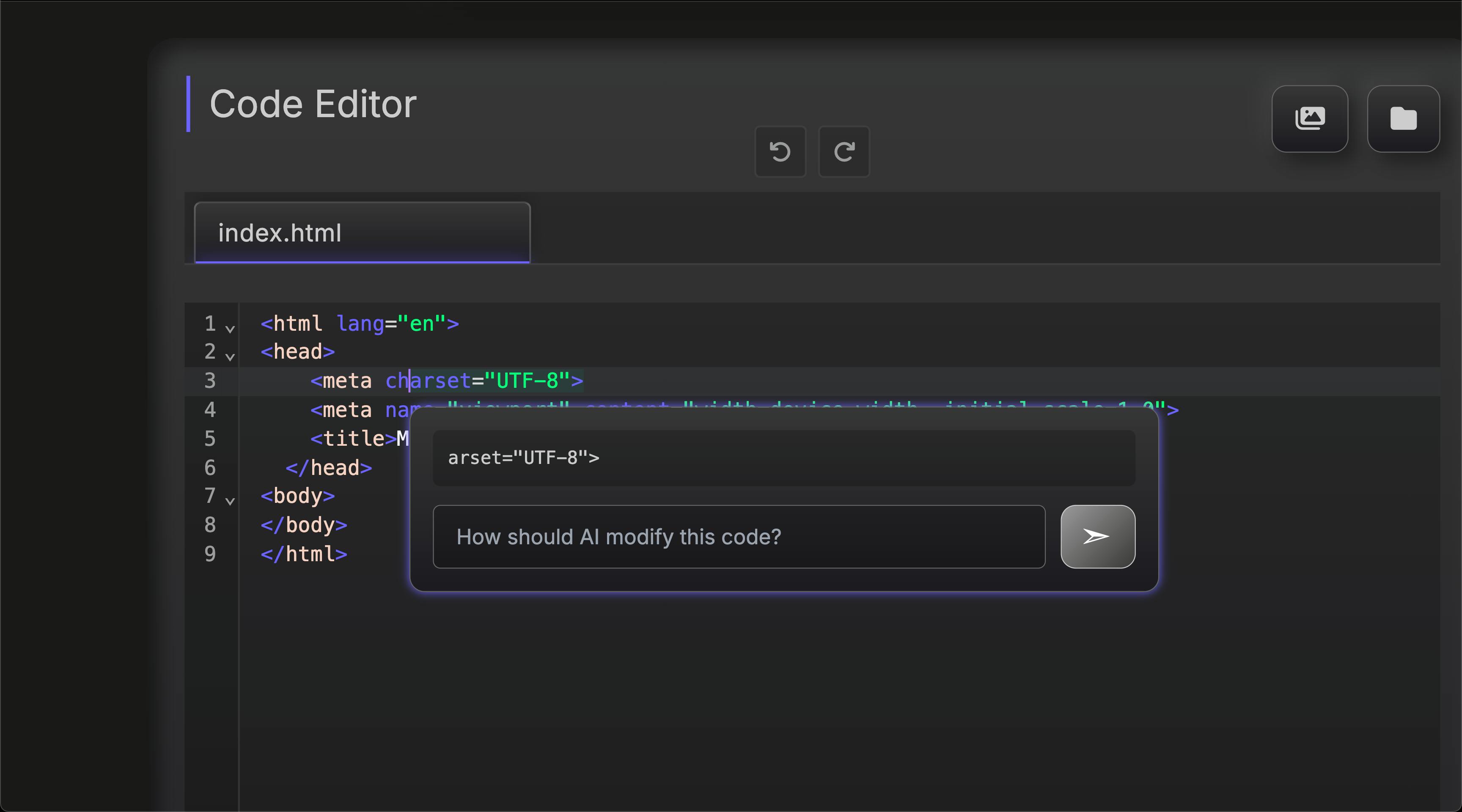 Perfect your code with our advanced editor featuring AI-powered suggestions and instant modifications.